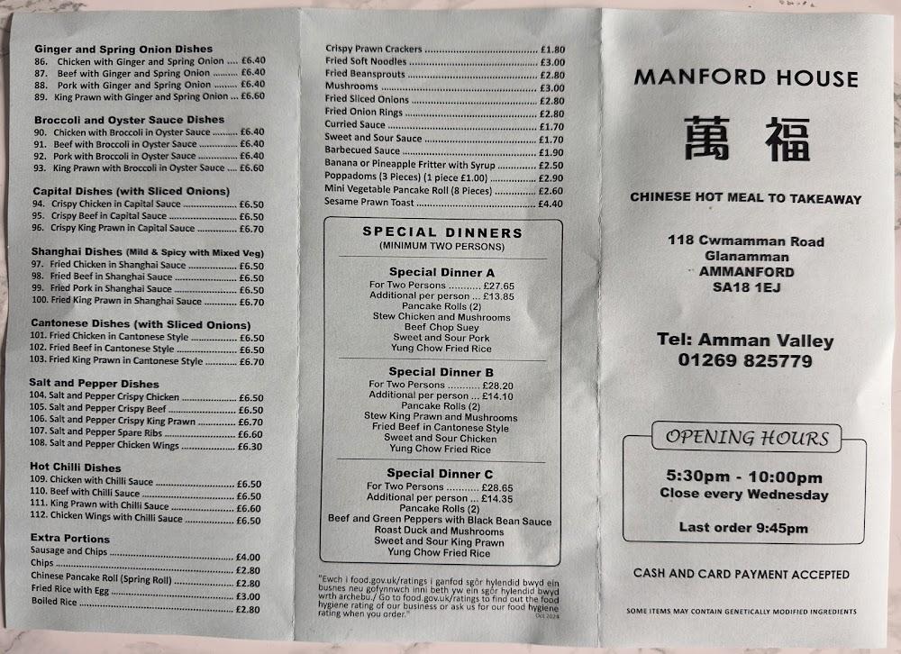 Nestled in the heart of Glanaman, Manford House embodies the rich traditions of Chinese cooking while embracing its local environment. Located on Cwmamman Road, this eatery becomes a beacon of warmth and flavor against the backdrop of a close-knit community. Open every day of the week, it serves up delectable dishes that elevate simple ingredients into culinary delight. Plenty of free street parking makes it convenient for those who can’t resist a takeaway or want to dine under the casual ambience. Frequent visitors appreciate the respectful service and the stunning array of flavors presented no matter if they dine in or take their meals to go. Manford House welcomes everyone with open arms, and food lovers return not just for the tasty treats but also for the inviting environment that makes every meal a memorable experience.